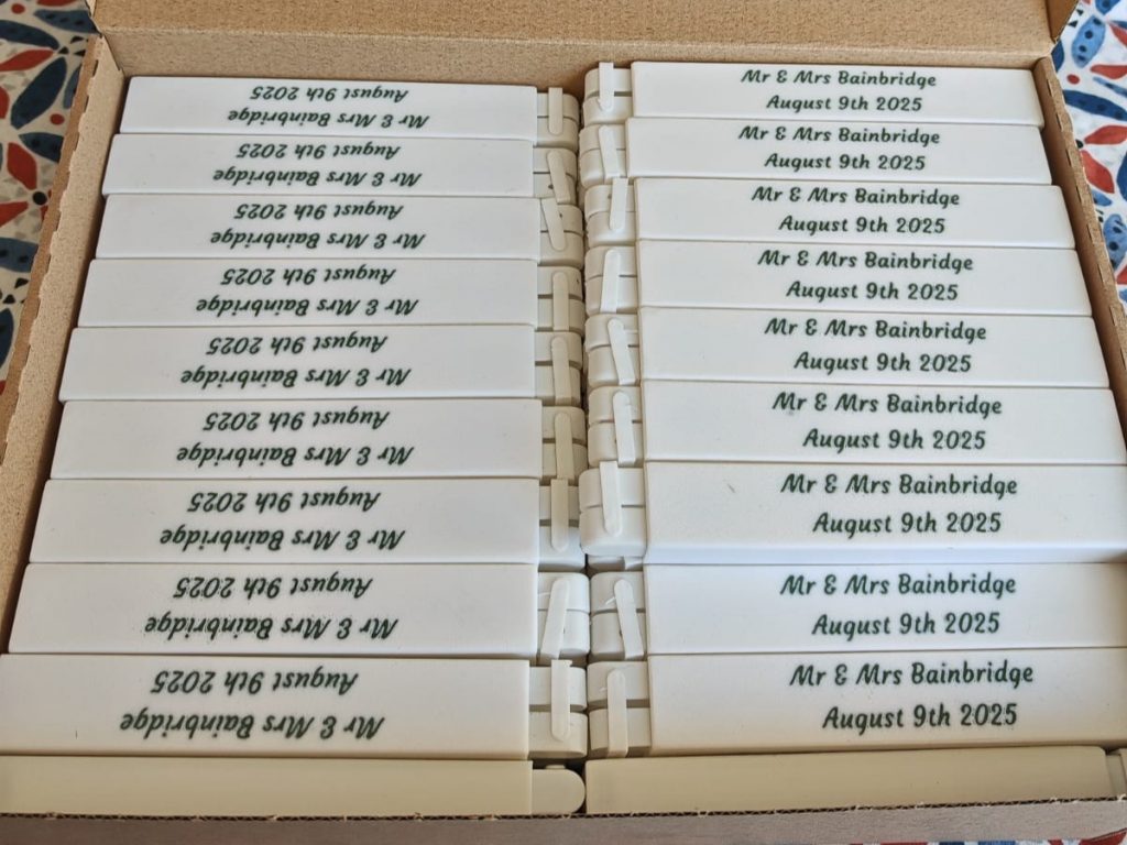 Paper fans, ideal favours for any situation, round or heart shaped, quantity no issue, case and lettering colours optional